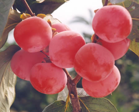 1、新東陽柿:果重200-300克,形色皆如西紅柿,火紅顏色,美麗絕倫,十分誘人。肉質金黃無核,采下即食,不用脫澀,風味極甜,吃一個滿口余香,吃兩個終生不忘。9月中旬成熟,樹上掛果2個月之久,經霜落葉不落果,葉落盡而果更美,果壓枝頭,紅艷滿枝,而且仍然硬脆不軟,百果凋零之時,獨自傲立風霜。采用一邊倒技術,第二年百分之百結果,第三年畝產5000斤,第四年畝產2萬斤。