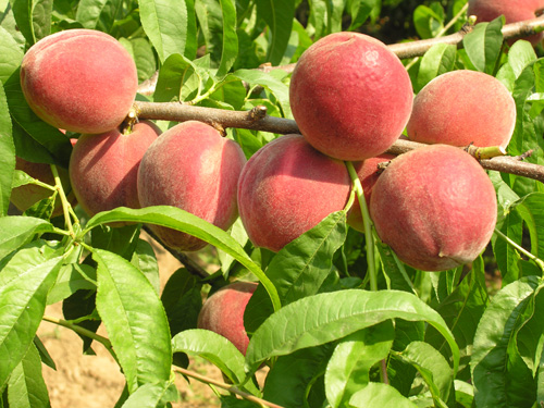 4、萊山蜜桃:9月上旬成熟,單果重200克,最大450克,果肉硬,鮮紅色,風味極甜,畝產可達萬斤,已被列入出口的優良品種之一。