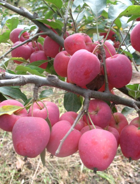 紅富士蘋果---幼樹和高接樹前期生長強(qiáng)旺,易徒長,生長量大,隨著樹齡的增長而逐漸緩和開張。幼樹總生長量比國光大,長、中、短枝量及總長度都比國光多,總?cè)~面積大,為早結(jié)果、豐早產(chǎn)奠定了基礎(chǔ)。如2年生紅富士比同齡國光干周大14%,冠積大67%,生長點總數(shù)多1.35倍,總生長量大1.13倍。