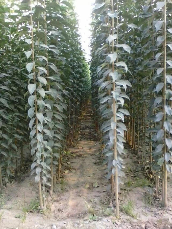 冬播在封凍之前進行,一般不需催芽。春播在解凍之后進行,催芽則效果顯著。為打破女貞種子休眠,播前先用550mg/kg赤霉素溶液浸種48h,每天換1次水,然后取出晾干。放置3~5d后,再置于25~30℃的條件下水浸催芽,注意每天換水。播種育苗于3月上中旬至4月播種。播種前將去皮的種子用溫水浸泡1天,采用條播行距為20cm,覆土厚1.5~2.0cm。播種量為105kg/hm2左右。女貞出苗時間較長,約需1個月。播后最好在畦面蓋草保墑。